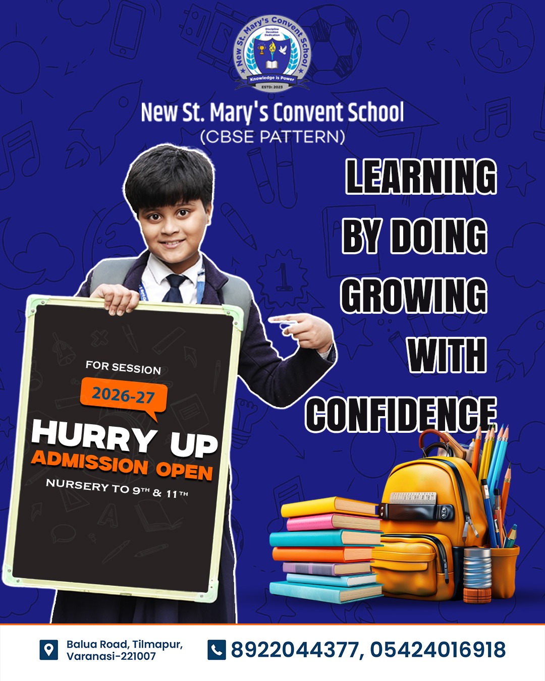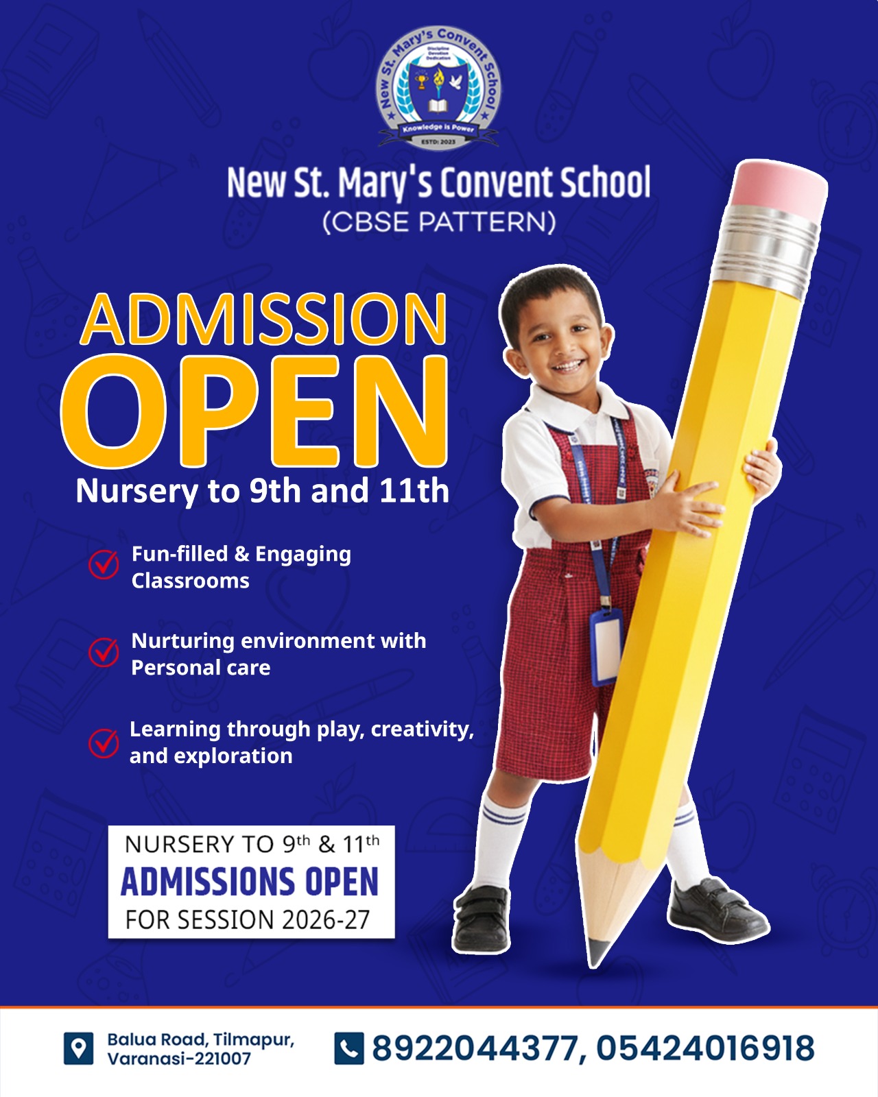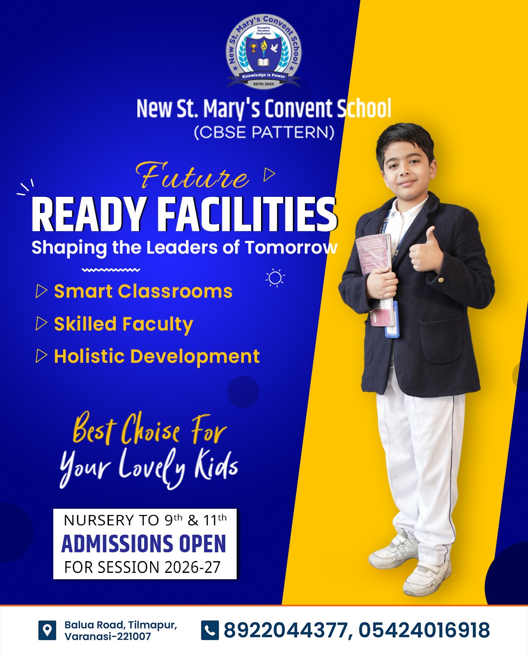 The Foundation of New St. Mary's Convent School laid in a endeavour to bring and international standard of school education to the children of Varanasi. It is a co-educational CBSE affiliated school having classes from Nursery to 10+2 . The School is dedicated to prepare its students to become global citizens and achieve life-long learning, by equipping them with critical lifeskills and positive attitudes.