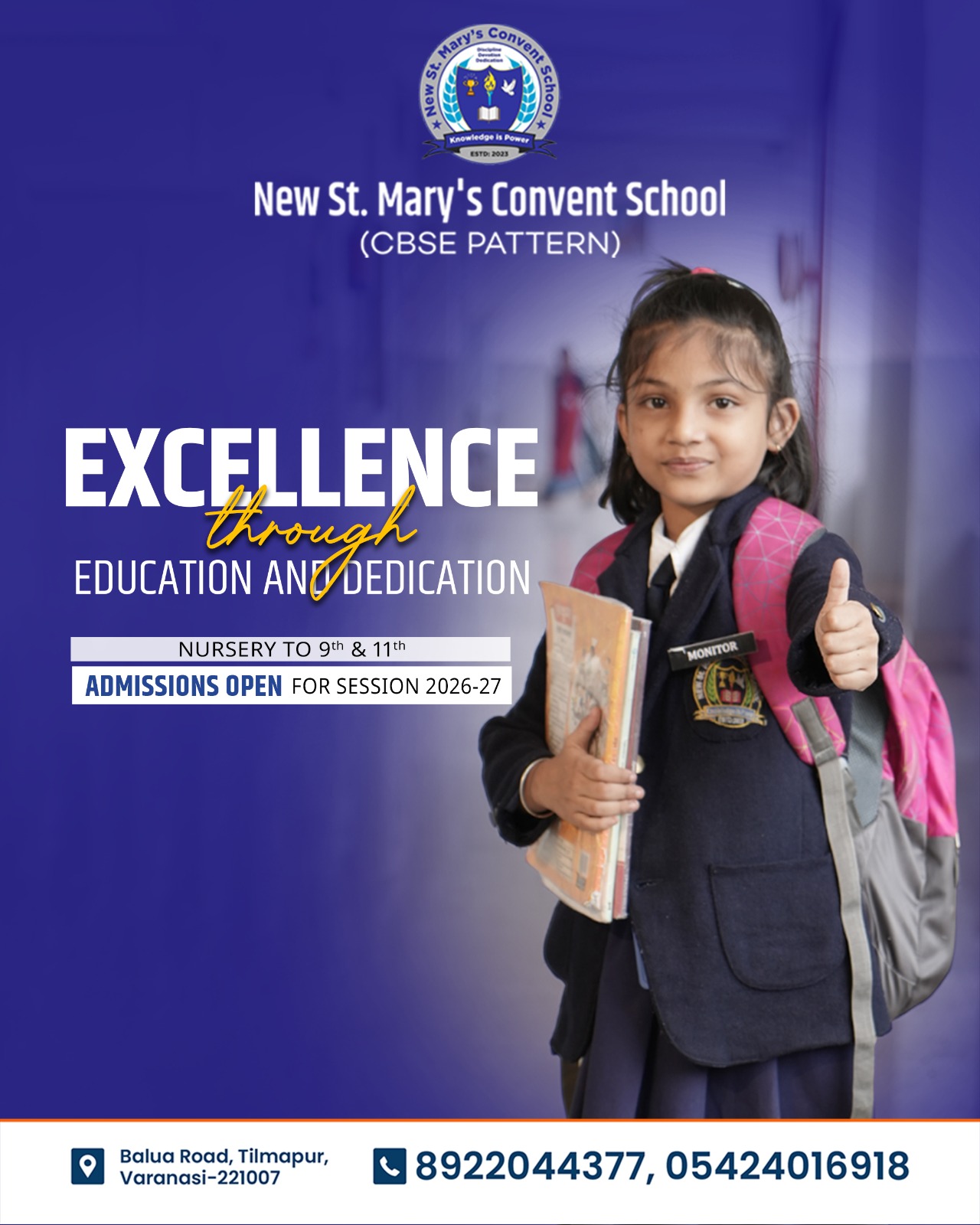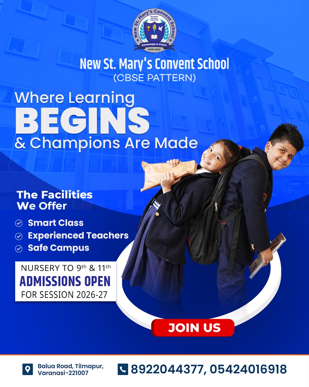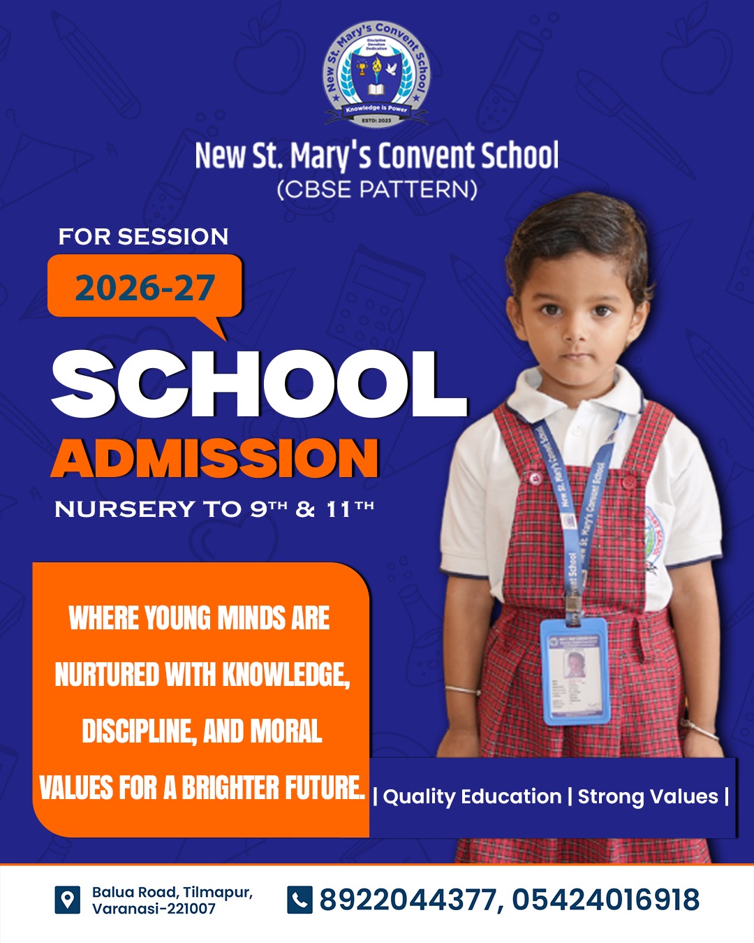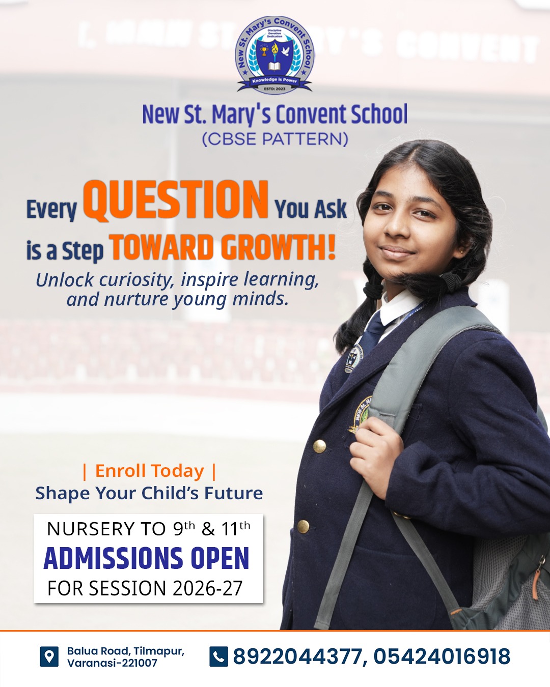 The Foundation of New St. Mary's Convent School laid in a endeavour to bring and international standard of school education to the children of Varanasi. It is a co-educational CBSE affiliated school having classes from Nursery to 10+2 . The School is dedicated to prepare its students to become global citizens and achieve life-long learning, by equipping them with critical lifeskills and positive attitudes.
